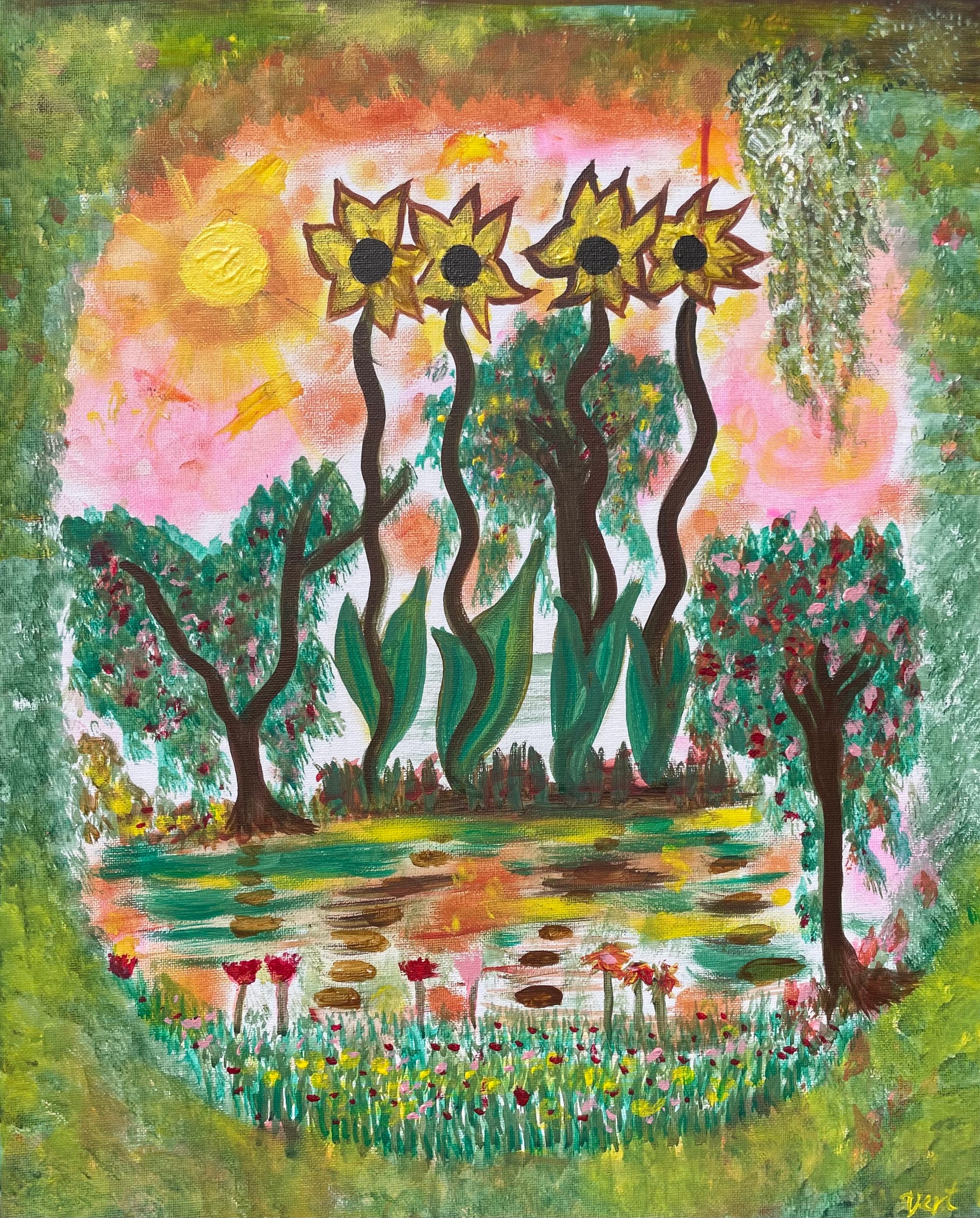 « Colorful Dance » Four sunflowers move as if in a luminous choreography.